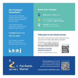 The leaflet has been designed to promote the annual Fairfields Manor Travel Survey and to inform residents that the Get Me 2 Fairfields Manor Website is the best place to provide you with information on how best to travel in your area and keep you updated with local and national events.